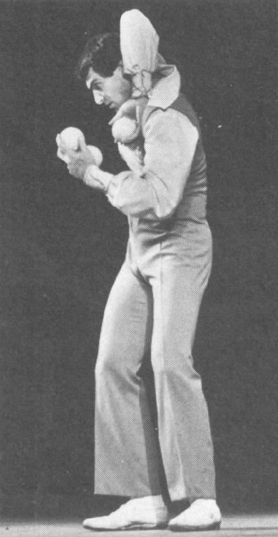 From his opening trick there was no doubt in the audience of Gatto's superior juggling ability. His appearance in handsome long pants and long-sleeved shirt instead of the shorts and sport shirt he used to wear conveyed a message of professionalism.