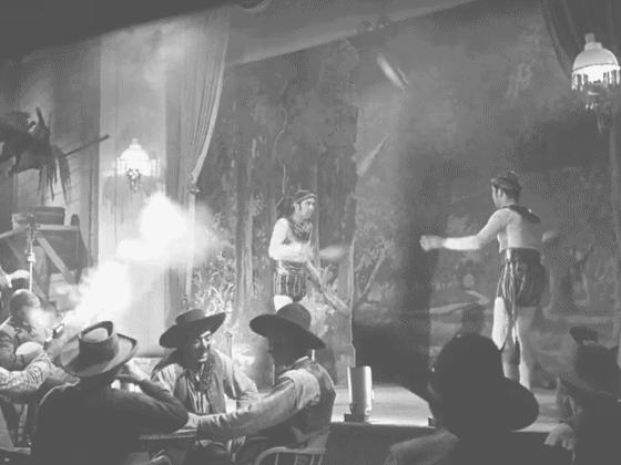 on the saloon stage, when Lon Chaney Jr., as bad guy Jack McCall, uses
