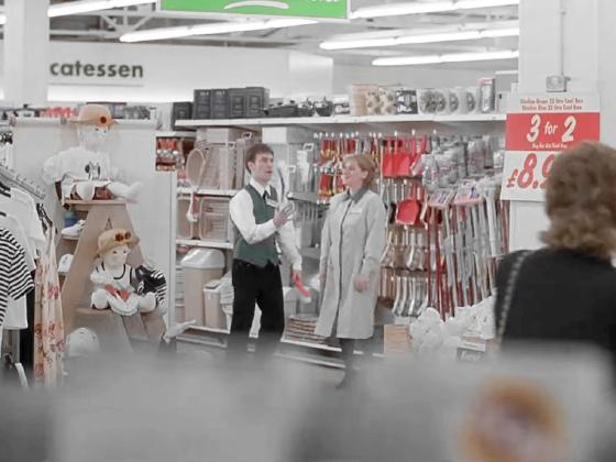 At 37:22, a store clerk juggles three brushes for 14 seconds. Later he
