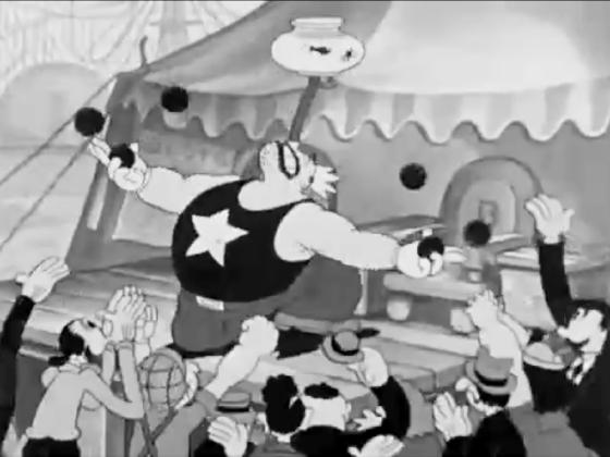 Animation. A Mardi Gras celebration, looking pretty much like any carnival. Bluto is a strongman, claiming to be King of the Mardi Gras, and drawing a large crowd. Popeye, nearby, claims only, "I yam what I yam," and has no crowd, but still draws Bluto's wrath. He manages to spoil a balance trick, then tops it with Wimpy in a chair. Olive Oyl then volunteers to be levitated, and Bluto pulls her over and saws her in half. Olive escapes to a roller coaster with the boys in pursuit.