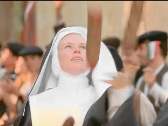 parade scene, as one of 5 women dressed as 1901 nuns from Italy.
