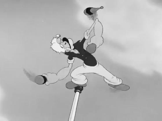 At 01:37, when Popeye is looking for his father, he finds his mischievous