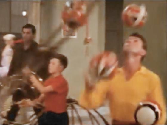 juggles 3 large balls while bouncing another one