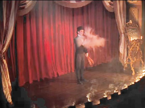 on the saloon stage, a juggler named Professor Gilman played by Charles