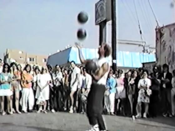 of Robert Gruenberg at Venice Beach in Los Angeles. He first juggles